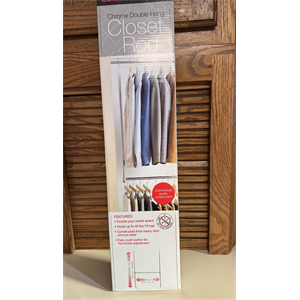 Commercial grade Closet Rod Chrome Double Hang Features Double your closet Holds up to 40 pounds Constructed from heavy duty chrome steel Easy push button horizontal adjustment read more...